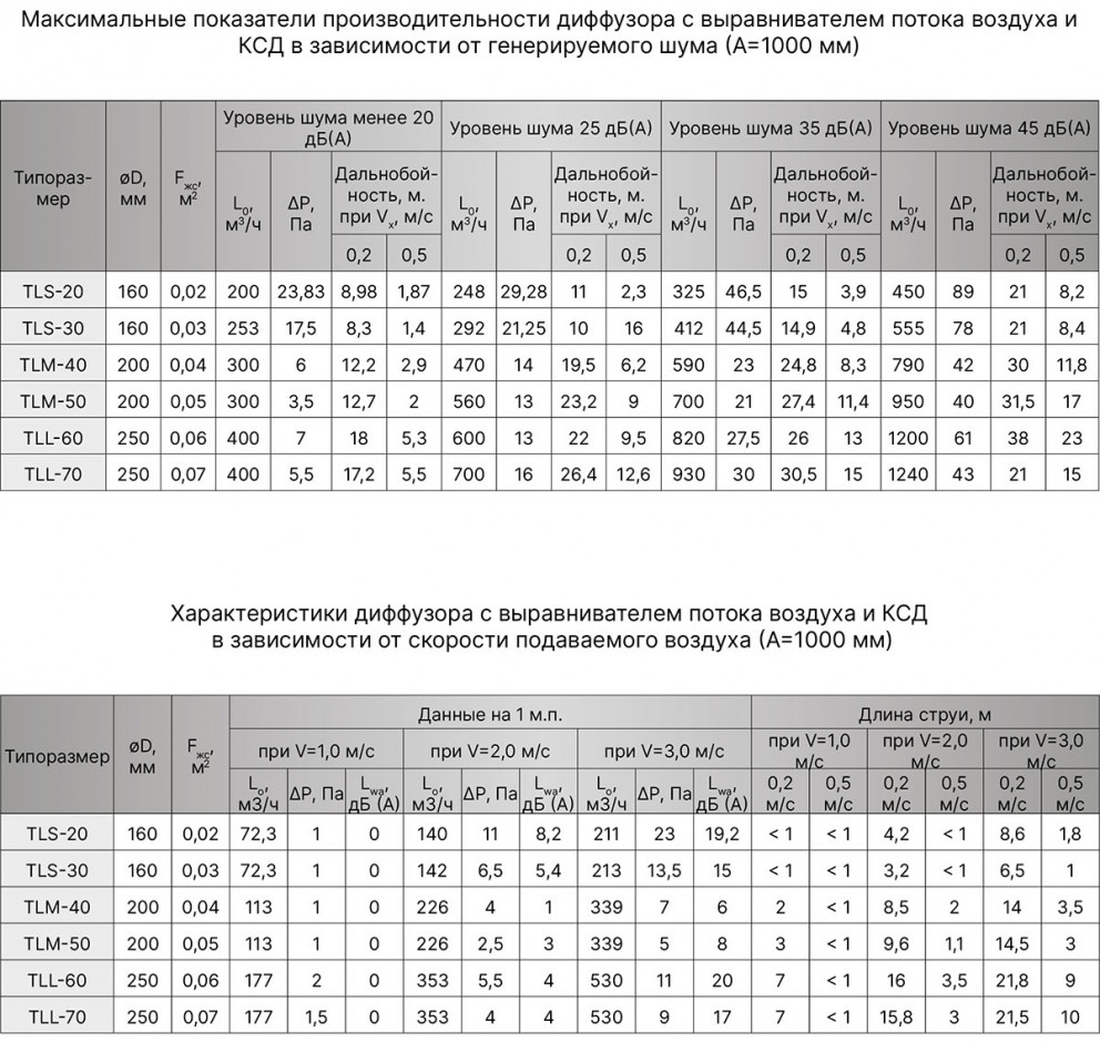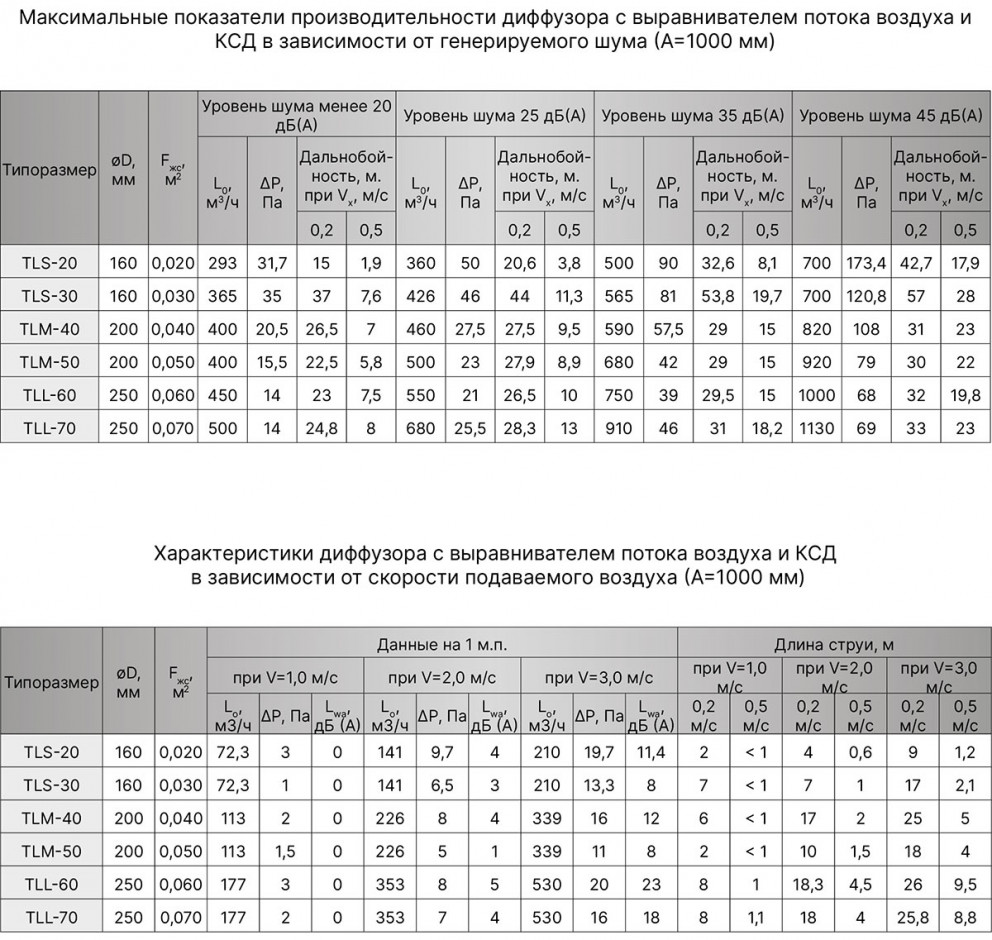 На примере диффузора TLM-20/1000 при скорости подачи воздуха 1 м/с