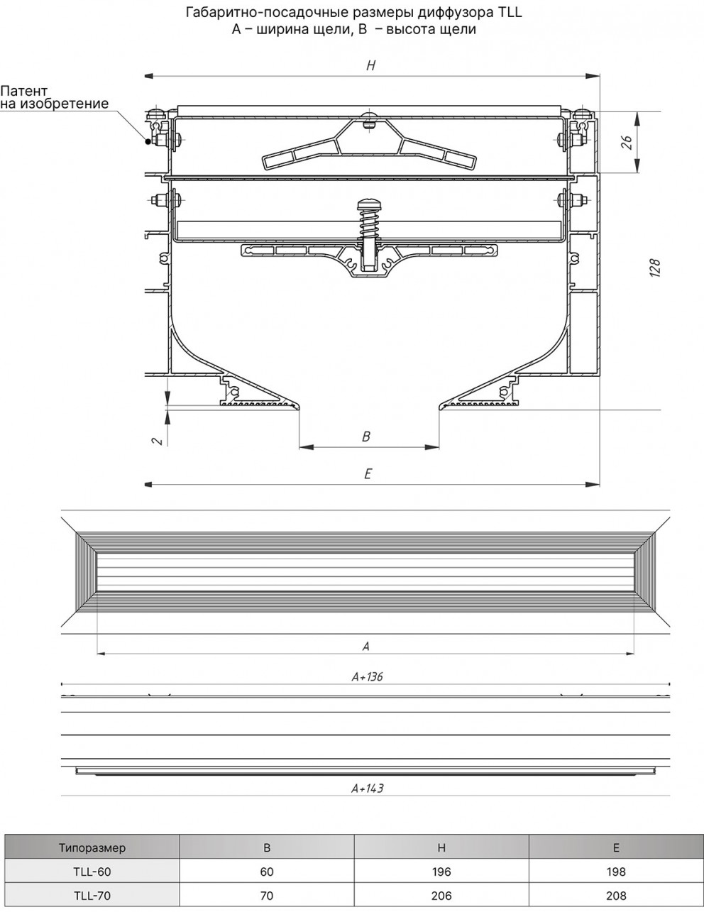 Конструкция вентиляционного щелевого диффузора обеспечивает эффективное распределение воздушных потоков с сохранением живого сечения диффузора и объема подаваемого воздуха при любом положении дефлектора.