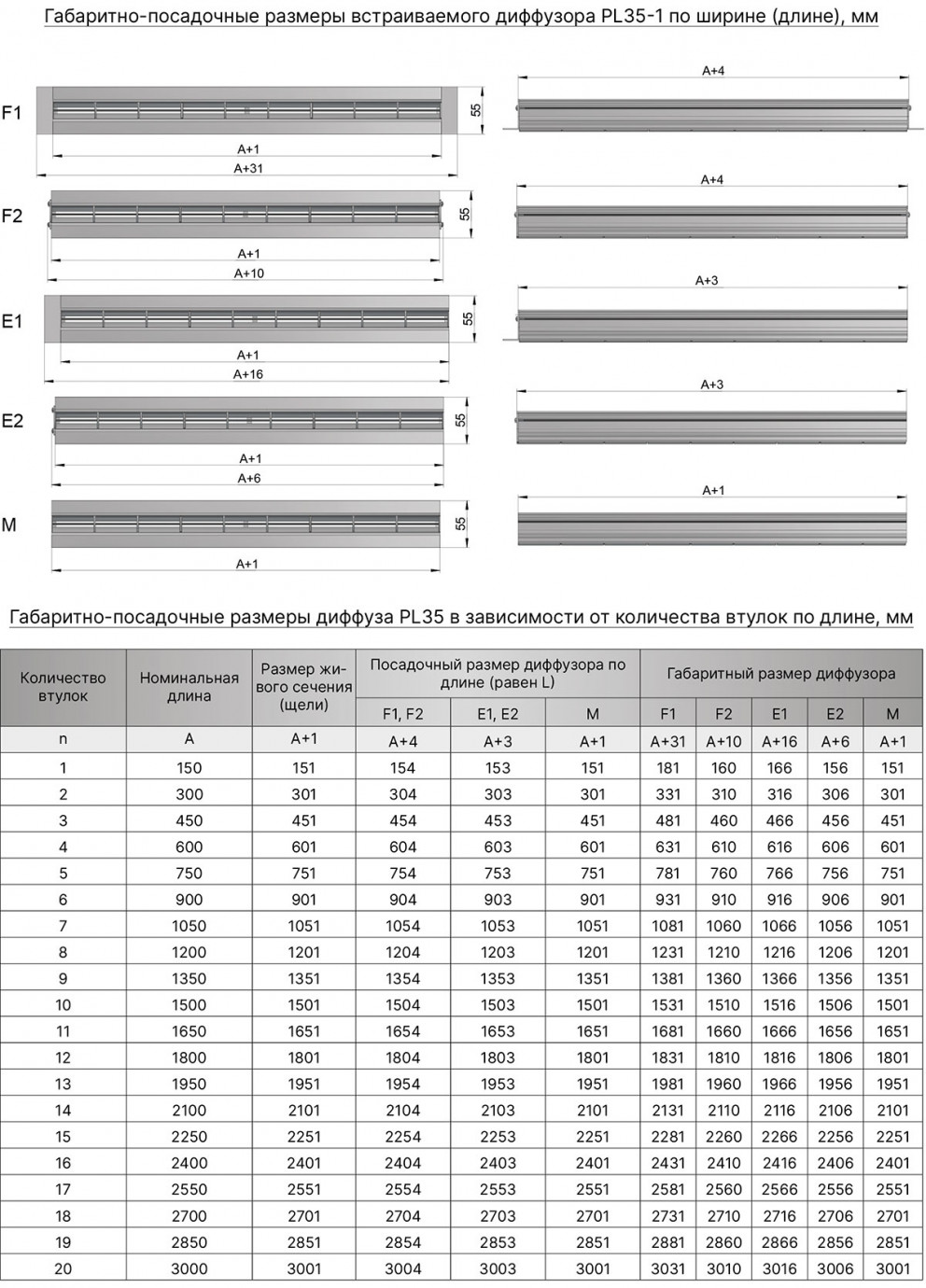 Приточный щелевой диффузор PL35