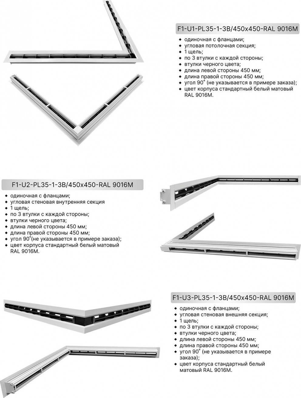 Как и все щелевые решетки, диффузор PL35 изготавливается в виде угловой секции для установки вентиляционной системы по всему периметру помещения.