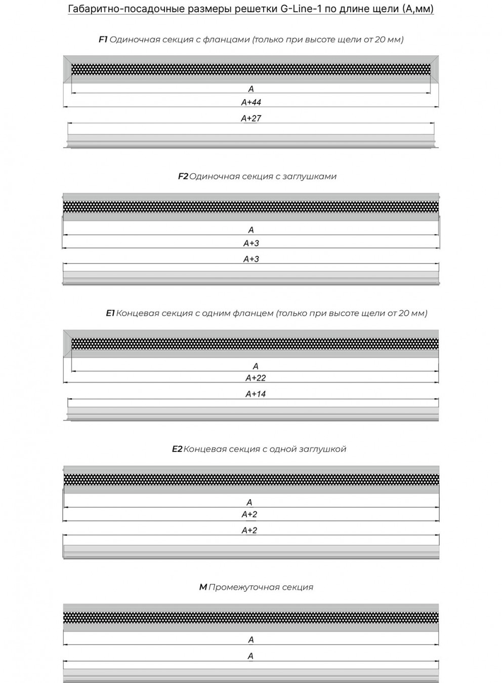 Габаритно-посадочные размеры решетки зависят от серии решетки и ее типоразмера. Чтобы верно определить посадочный размер, необходимо воспользоваться расчетом по чертежам определенного типа решетки.