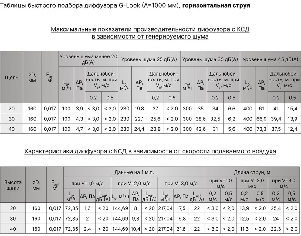 Корпус диффузора G-Look изготавливаются из экструдированного алюминиевого профиля АД31 по ГОСТ 22233-2001, регулирующая пластина - из оцинкованной стали. По умолчанию корпус диффузоров окрашивается в стандартный белый цвет RAL9016M матовый, а внутренняя пластина (дефлектор) в чёрный цвет RAL9005М матовый. По индивидуальному заказу возможна окраска в любой цвет по шкале RAL как корпуса, так и внутренней части.