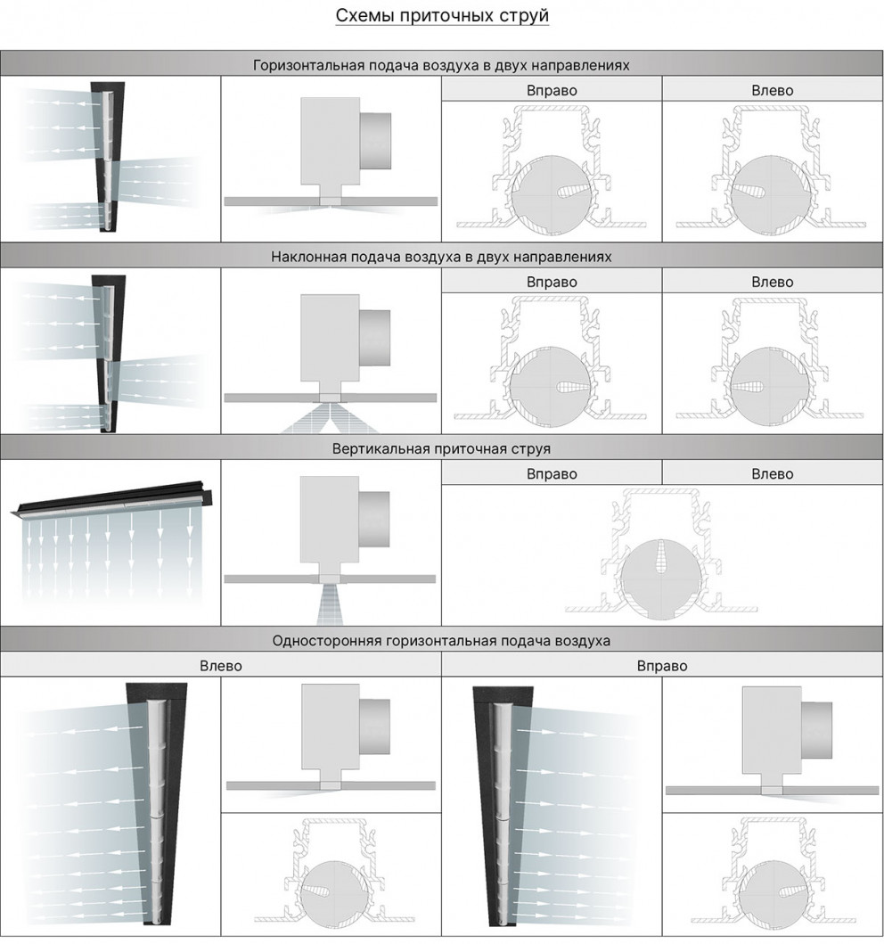 1, Возможность регулирования направления воздушного потока горизонтально, вертикально и наклонно. Направление приточной струи настраивается вручную в одном или одновременно в нескольких направлениях, что позволяет адаптировать приток воздуха к конкретным условиям.