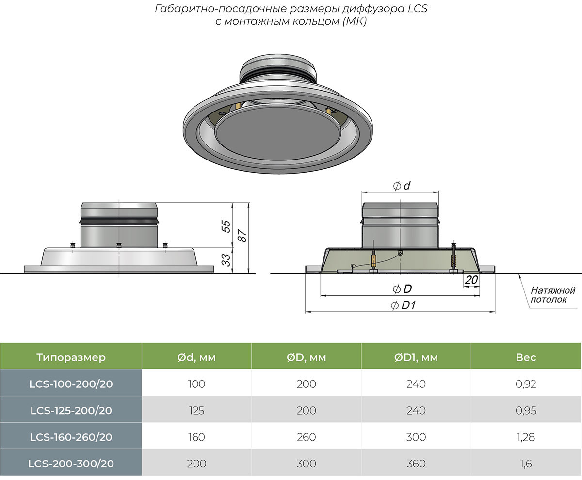 Диффузор предназначен для установки в натяжной потолок. Диффузор применяется как для притока с горизонтальной подачей воздуха, так и для вытяжки.